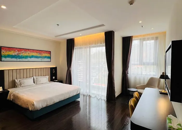 Set on the beachfront, nearly a 25-minute walk from the Sun Wheel, the non-smoking Saphire Ha Long Aparthotel boasts beauty services and a shared lounge. A shared lounge are available for guests' convenience at the aparthotel, which sits in the Hon Gai district of Ha Long.